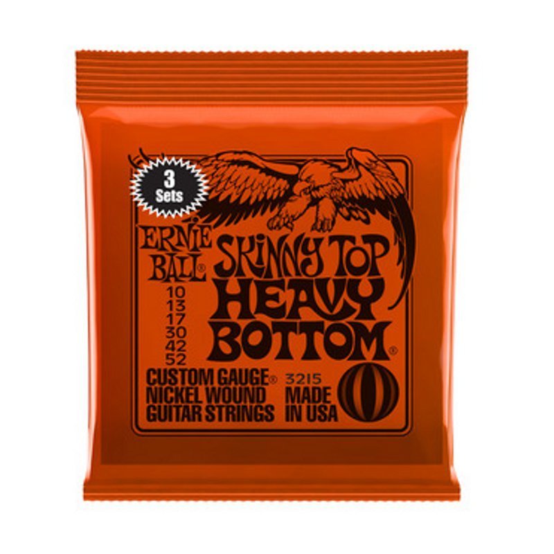 Voor de gitarist die niet wilt inbinden op zijn solo-kwaliteit wanneer hij voor dat zwaardere geluid gaat. De Ernie Ball 3215 Skinny Top Heavy Bottom Nickel Wound combineert de 10 gauge-set met 30, 42 en 52 gauge-set.